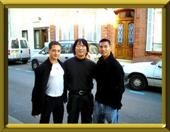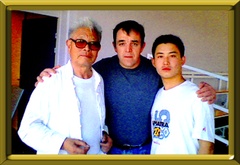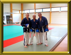 |  Maître Michio Shimada et mon fils Demerin Thomas en compagnie de Christophe Huyge lors d'un stage de Tai Ki Ken dans mon Club en 2005 |