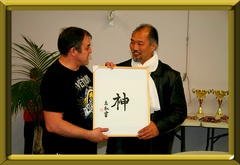 |  Maître Wang Zhihong m'offrant une calligraphie faite de sa main lors des Championnat de France de Shuai-Jiao le 29 Juin 2014 à Laon |