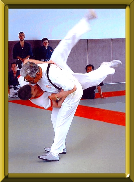 Karaté Jutsu-Karaté Contact-Yoseikan Budo-Yi Chuan-Taikiken-Shuai Jiao-Boxe Chinoise Sanda Sanshou-Qi Gong Projection de hanche de Shuai-Jiao démontré part le Maître Wang Wenyong en 2006 |  |