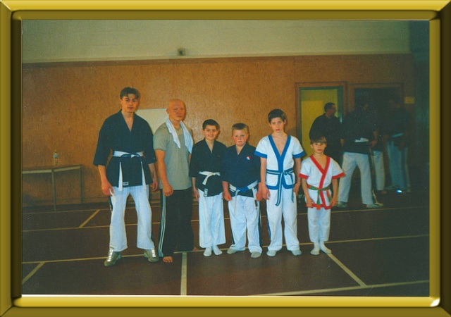 Karaté Jutsu-Karaté Contact-Yoseikan Budo-Yi Chuan-Taikiken-Shuai Jiao-Boxe Chinoise Sanda Sanshou-Qi Gong Stage de Taikiken en 2002 dans mon Club, en partant de la droite Camille et Adrien Lesueur et Thomas Demerin |  | Stade de Taikiken à Laon en 2002 Avec Sensei Kenji Hattat disciple d'Iwama Norimasa élève direct du Fondateur du Taikiken Sensei Kennechi Sawai (1903-1988). En Partant de la droite Camille et Hadrien Lesueur, Thomas Demerin et Kenji Hattat