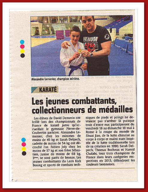 Article de presse de l'Union du 7 Mai 2014 Alexandre Lermenier Champion de France de Karaté Jutsu