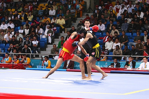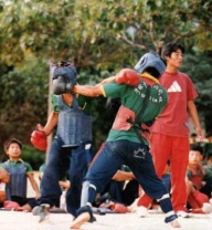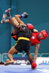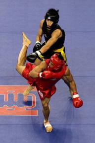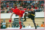 Les arcanes de Shaolin - Boxe chinoise - Sanda - Sanshou Arts Martial d'origine chinoise créé au XXe siècle.. | Sanda ( frappes aléatoires ) : également appelé Sanshou ( mains aléatoires ), le Sanda est une forme de combat libre; on peut aussi le qualifier de Kung-fu sportif ou de sport de combat ; par opposition au kung-fu traditionnel qui est un art martial. Le Sanda se caractérise par l'utilisation des poings, de jambes et des projections. Dans les années 70, le gouvernement chinois commence à promouvoir le Sanda pour mettre fin aux combats sans catégorie de poids et autorisant presque tous les coups, qui sont organisés dans les villes et les villages. Ces combats se gagnaient par K.O. ou par abandon. Les premiers tournois prennent leur essor dans les années 80. On peut même espérer voir un jour le Sanda comme discipline olympique. Un combat se compose de deux ou trois rounds de deux minutes chacun avec un arbitre central et quatre arbitres de coins comptabilisant les points. La tenue du combattant se compose d'un casque, d'un plastron, d'une paire de gants, d'une paire de protège tibia, d'une coquille et d'un protège dents. Les Chinois codifièrent ce style sous la forme de quatre groupes basiques martiaux : Da (frapper) : poing, paume, coude, doigts, tête. Tui (shooter) : pied, balayage, genou Shuai (projeter) : lutte, projection, chute Na (saisir) : saisies, clés, soumission C'est un art martial très complet alliant la boxe pieds-poings et la saisie projection. Ce qui distingue un art martial d'un sport de combat, c'est la pensée philosophique et la méthode d'entraînement. Le terme sanshou définit l'art martial et le terme de sanda définit la compétition professionnelle. En outre le sanshou est représenté comme un sport de combat car il suit les règles de compétition strictes respectant l'esprit sportif. C'est dans une version beaucoup plus sportive, tant sécuritaire que compétitive que le sanshou est pratiqué. Il se conforme donc à un format de kick boxing introduisant le début de certaines règles et de protections. Si vous êtes assailli de coups, la plupart des styles martiaux peuvent faire face à ces situations aisément surtout lorsque vous êtes en position debout. En effet, être à terre pour un temps indéterminé vous rend complètement vulnérable dans une situation réelle de combat et les risques sont exponentiellement multipliés, même s'il existe des styles de combat exclusivement au sol. C'est pour ces raisons que le san shou se focalise essentiellement sur le combat debout ou sur pied. Désormais, le san shou se traduit par les pieds poings projections sans soumission (na) ni combat au sol. À l'origine l'utilisation de coudes et genoux était autorisée lors des rencontres inter militaires, mais ils furent interdits pour la version sportive officielle internationale lors des premiers championnats du monde en 1991. En 1997, la coopération Chine-États-Unis mit en place des rencontres professionnelles se basant sur des principes de kick boxing comme le muay thaï. Ces matchs donnèrent lieu à des combats de boxe sans l'utilisation des protections inhérentes outre les plastrons, les casques et les protège-tibias. Les Chinois nommèrent le sanshou professionnel le sanda, un terme qui signifie " combat libre et complet " ou " full contact fighting ". L'essor du sanda n'a pris toute son ampleur que depuis 2003. Il y a eu énormément de rencontres professionnelles. Aujourd'hui, des rencontres au sommet ont lieu comme le San Da King organisé par les Chinois. De surcroît, des rencontres inter styles se sont déjà déroulées avec succès et les médias en font des événements exceptionnels ; il y a aussi le K-1 promu par le Japan Shootboxing Association ou bien des rencontres Chine-Thaïlande ont déjà été organisés faisant intervenir des professionnels du sanda et du muay thaï.