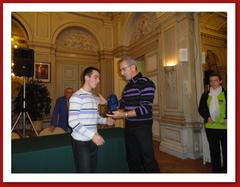 Monsieur Philippe Mozin Maire-Adjoint chargé des sports remettant le trophée de l'Athlète de l'année à Steven Quaneaux en 2011 |