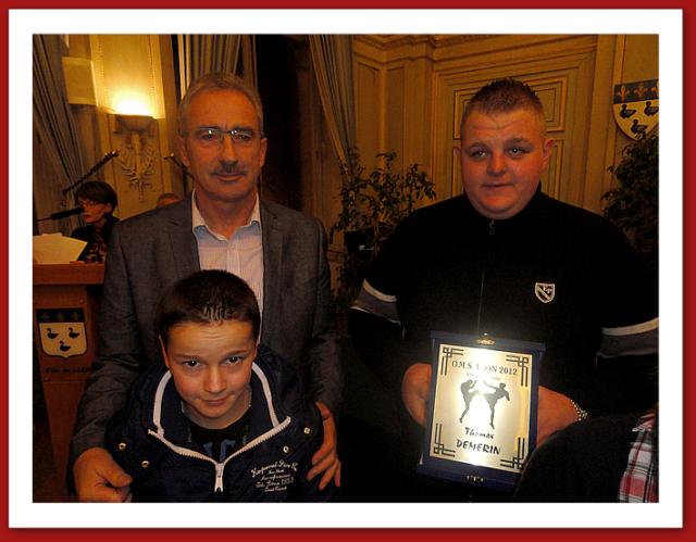 Récompense des Athlètes titrés et Dirigeants Méritants Monsieur Phlippe Mozin Maire Adjoint chargé des sports de la ville de Laon en compagnie d'Alexandre Lermenier et Thomas Demerin Athlètes Titrés 2012 |  |