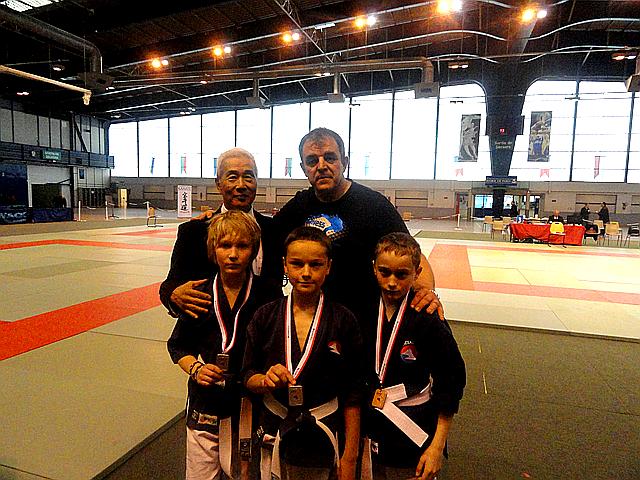 Open de France , Coupe de France, Championnat de France: Karaté Contact, Karaté Jutsu, Karaté Mix, Full-Contact, Sanda, Yoseikan Budo,Kick Boxing, Muay-Thaï, Shuai-Jiao Maître Hiroo Mochizuki 9 eme Dan Fondateur du Yoseikan Budo et David Demerin à l'open Semi Contact Interdisciplines le 31 mars 2012 avec ses Champions |  |