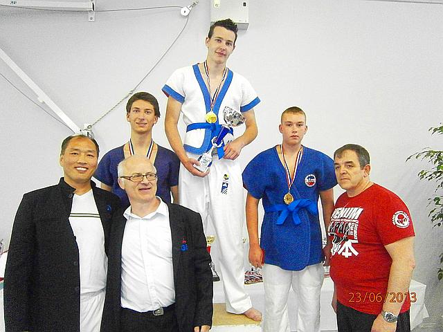 Open de France , Coupe de France, Championnat de France: Karaté Contact, Karaté Jutsu, Karaté Mix, Full-Contact, Sanda, Yoseikan Budo,Kick Boxing, Muay-Thaï, Shuai-Jiao Carlier David catégorie Juniors -70kg Médaille d'Or Champion de France de Shuai-Jiao et Sebastien Joly Médaille de Bronze le 23 juin 2013 à Laon |  |