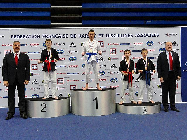 Open de France , Coupe de France, Championnat de France: Karaté Contact, Karaté Jutsu, Karaté Mix, Full-Contact, Sanda, Yoseikan Budo,Kick Boxing, Muay-Thaï, Shuai-Jiao Alexandre Lermenier catégorie Minimes Champion de France de Karaté Jutsu le 27 Avril 2014 à Paris Stade Pierre de Coubertin |  |