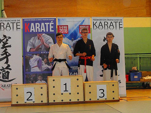 Open de France , Coupe de France, Championnat de France: Karaté Contact, Karaté Jutsu, Karaté Mix, Full-Contact, Sanda, Yoseikan Budo,Kick Boxing, Muay-Thaï, Shuai-Jiao Alexandre Lermenier catégorie Cadet - 57 kg Champion de France de Karaté Jutsu le 23.04.2016 à Paris |  |