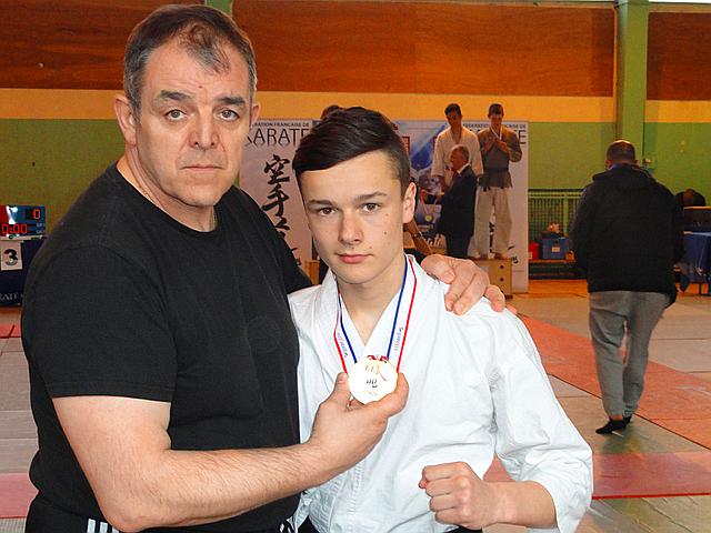 Open de France , Coupe de France, Championnat de France: Karaté Contact, Karaté Jutsu, Karaté Mix, Full-Contact, Sanda, Yoseikan Budo,Kick Boxing, Muay-Thaï, Shuai-Jiao Alexandre Lermenier Champion de France de Karaté Jutsu avec son Professeur David Demerin le 23.04.2016 à Paris |  |