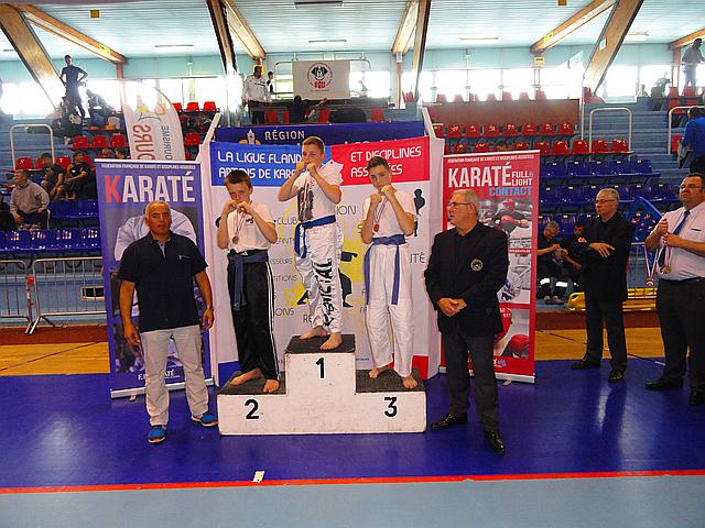 Open de France , Coupe de France, Championnat de France: Karaté Contact, Karaté Jutsu, Karaté Mix, Full-Contact, Sanda, Yoseikan Budo,Kick Boxing, Muay-Thaï, Shuai-Jiao Forjan Clément catégorie minime -60 kg Médaille de Bronze au championnat de France de Karaté Light Contact le 11.06.2016 Valenciennes |  |