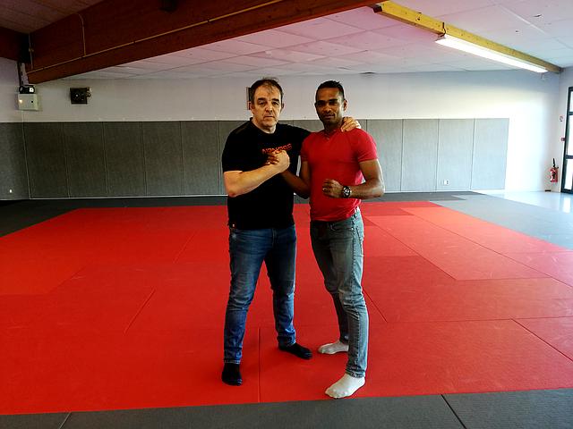 Open de France , Coupe de France, Championnat de France: Karaté Contact, Karaté Jutsu, Karaté Mix, Full-Contact, Sanda, Yoseikan Budo,Kick Boxing, Muay-Thaï, Shuai-Jiao Odule Jean-Eddy avec son ancien professeur Demerin David 2019 |  | Odules Jean-Eddy est resté pendant plusieurs années dans le Club à pratiquer la Boxe Thaïlandaise, Yoseikan Budo et plusieurs disciplines ( Karaté Jutsu, karaté kempo, Kick boxing, Full-contact etc.) avec Monsieur Demerin David. Jean-Eddy Odules a participé à plusieurs compétions de Karaté Contact et de Yoseikan Budo à cette époque (Coupe de France, championnat de France). Suite à sa mutation Professionnelle, il a continué a pratiquer le Yoseikan Budo en devenant Champion du Monde de Yoseikan Budo. Il est venu en 2019 me rendre une petite visite et me remercier des années passé dans le club et de l'enseignement transmis, un moment intense en émotion et de véritable valeurs martiale.