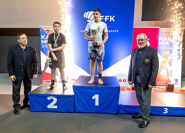 Open de France , Coupe de France, Championnat de France: Karaté Contact, Karaté Jutsu, Karaté Mix, Full-Contact, Sanda, Yoseikan Budo,Kick Boxing, Muay-Thaï, Shuai-Jiao Sallandre Matis catégorie minime - 60 kg Médaille d'argent de la coupe de France de Karaté Mix le 3.12.2022 à Paris |  |