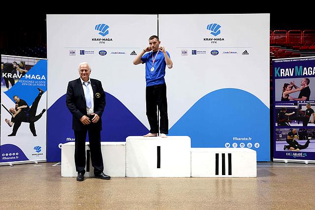 Open de France , Coupe de France, Championnat de France: Karaté Contact, Karaté Jutsu, Karaté Mix, Full-Contact, Sanda, Yoseikan Budo,Kick Boxing, Muay-Thaï, Shuai-Jiao Kenzo Henneville Médaille d'or champion de France Krav Maga combat 2023. |  | | Henneville Kenzo catégorie cadet -65kg Champion de France Médaille d'or du Championnat de France de Krav Maga le 20.05.2023 à Paris |