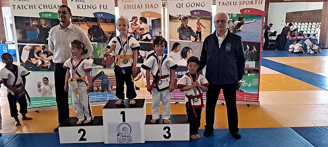 Open de France , Coupe de France, Championnat de France: Karaté Contact, Karaté Jutsu, Karaté Mix, Full-Contact, Sanda, Yoseikan Budo,Kick Boxing, Muay-Thaï, Shuai-Jiao Henneville Aeron Pré-poussin catégorie 20 kg médaille de Bronze de la Coupe de France de Shuai-Jiao le 4.06.2023 à Buchelay. |  | | Henneville Aeron Pré-poussin catégorie 20kg Médaille de Bronze de la Coupe de France de Shuai-Jiao le 04.06.2023 à Buchelay. |