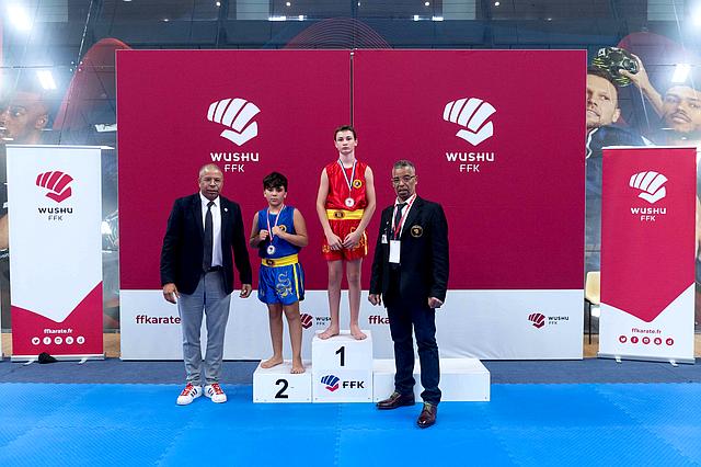 Open de France , Coupe de France, Championnat de France: Karaté Contact, Karaté Jutsu, Karaté Mix, Full-Contact, Sanda, Yoseikan Budo,Kick Boxing, Muay-Thaï, Shuai-Jiao Bertrand Timéo Médaille d’or catégorie minime – 52kg Open de France sanda contact le 15.10. 2023. |  |