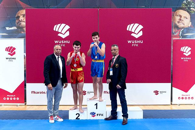 Open de France , Coupe de France, Championnat de France: Karaté Contact, Karaté Jutsu, Karaté Mix, Full-Contact, Sanda, Yoseikan Budo,Kick Boxing, Muay-Thaï, Shuai-Jiao Coutelas Arthur Médaille d’argent catégorie juniors -70 kg Open de France Light contact sanda 15.10. 2023. |  |