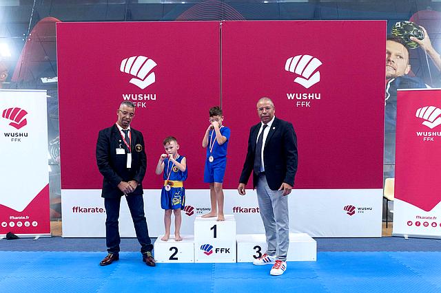 Open de France , Coupe de France, Championnat de France: Karaté Contact, Karaté Jutsu, Karaté Mix, Full-Contact, Sanda, Yoseikan Budo,Kick Boxing, Muay-Thaï, Shuai-Jiao Henneville Aaron Médaille d’argent catégorie poussin – 20 kg Open de France Light contact sanda le 15.10. 2023. |  |