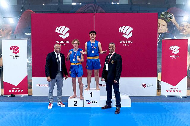 Open de France , Coupe de France, Championnat de France: Karaté Contact, Karaté Jutsu, Karaté Mix, Full-Contact, Sanda, Yoseikan Budo,Kick Boxing, Muay-Thaï, Shuai-Jiao Lajoie Ronin Médaille d’argent catégorie Cadet - 75gk Open de France sanda contact LE 15.10. 2023. |  |