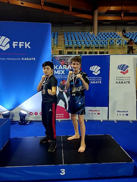 Open de France , Coupe de France, Championnat de France: Karaté Contact, Karaté Jutsu, Karaté Mix, Full-Contact, Sanda, Yoseikan Budo,Kick Boxing, Muay-Thaï, Shuai-Jiao Scote sébastien Médaille de Bronze catégorie minime – 45kg Coupe de France Karaté Mix Light Contact le 9.12.2023. |  |