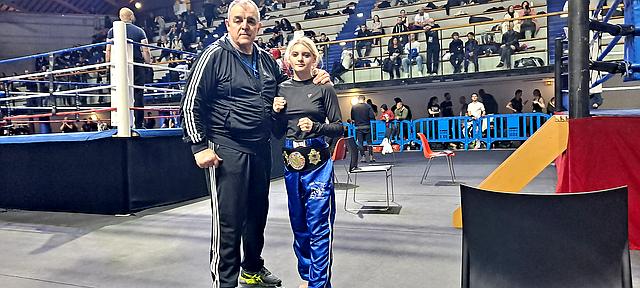 Open de France , Coupe de France, Championnat de France: Karaté Contact, Karaté Jutsu, Karaté Mix, Full-Contact, Sanda, Yoseikan Budo,Kick Boxing, Muay-Thaï, Shuai-Jiao Délya catillon vainqueur de l'Open international de Full-contact 2024 avec son professeur Demerin David |  |