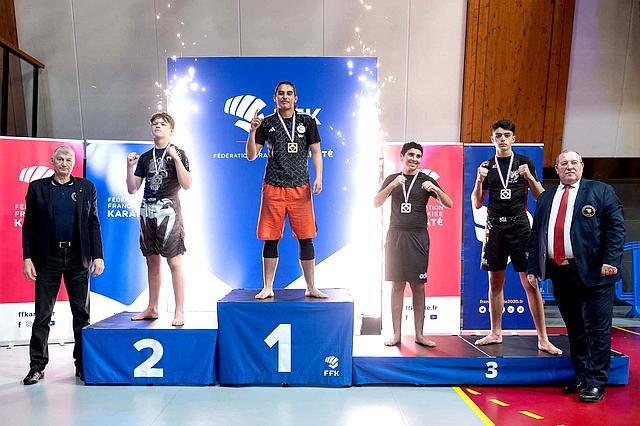 Open de France , Coupe de France, Championnat de France: Karaté Contact, Karaté Jutsu, Karaté Mix, Full-Contact, Sanda, Yoseikan Budo,Kick Boxing, Muay-Thaï, Shuai-Jiao Ouadah Zakaria minime 60 kg + Médaille d’or champion de France et Béchard Théo vice-champion de France interdisciplines le 12.05.2024 à Paris |  |