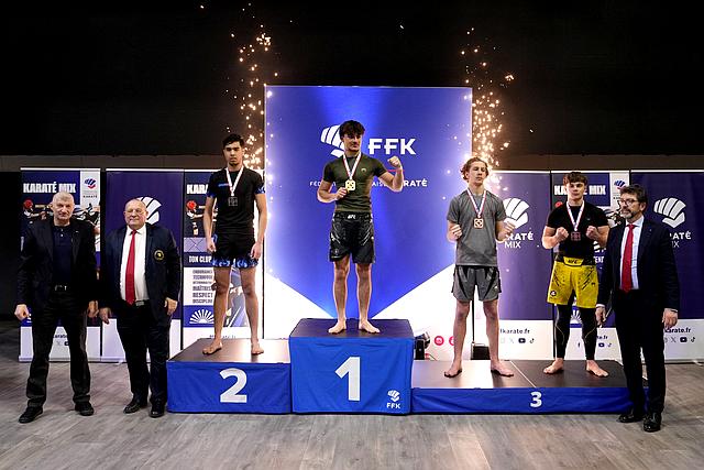 Open de France , Coupe de France, Championnat de France: Karaté Contact, Karaté Jutsu, Karaté Mix, Full-Contact, Sanda, Yoseikan Budo,Kick Boxing, Muay-Thaï, Shuai-Jiao Bianchi Evan catégorie junior -80 kg médaille de bronze au championnat de France de Karaté Mix Light Contact le 8.02.2025 à Paris. |  | | Bianchi Evan Junior -80 kg Médaille de Bronze au Championnat de France de Karaté Mix Light contact 2025 à Paris. |