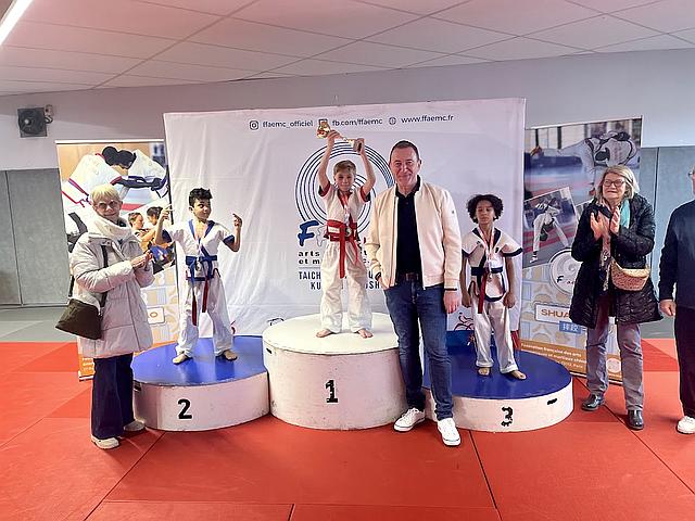 Open de France , Coupe de France, Championnat de France: Karaté Contact, Karaté Jutsu, Karaté Mix, Full-Contact, Sanda, Yoseikan Budo,Kick Boxing, Muay-Thaï, Shuai-Jiao Vanderlynden Léandro pupilles - 27 kg Vainqueur de la Coupe de France de Shuai-Jiao et Ennakouri Haroun pupilles - 27 kg médaille d'argent de Shuai-Jiao le 8 février 2026 à Laon en présence de Monsieur Eric Delhaye maire de Laon. |  | Le 8 février 2026, lors de la Coupe de France de Shuai-Jiao, Vanderlynden Léandro, dans la catégorie des pupilles -27 kg, a remporté la victoire, tandis qu'Ennakouri Haroun a décroché la médaille d'argent. La cérémonie de remise des médailles s'est tenue en présence de Monsieur Éric Delhaye, maire de Laon.