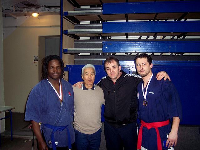 Open de France , Coupe de France, Championnat de France: Karaté Contact, Karaté Jutsu, Karaté Mix, Full-Contact, Sanda, Yoseikan Budo,Kick Boxing, Muay-Thaï, Shuai-Jiao Maître Hiroo Mochizuki très heureux de ces résultats avec mes élèves vainqueur de l'Open interdisciplines de plein contact en 2010 |  | | Open interdisciplines de plein contact en 2010 avec mes élèves qui avait gagné cette compétition dans les + 85 kg. Ce jour-là nous avions représenté l'école Yoseikan Budo et nous étions les seuls à représenter cette discipline dans cette compétition nationale. Le maître Hiroo Mochizuki fondateur de cette école et descendu spécialement des tribunes officielles pour nous remerciées d'avoir représenté le Yoseikan Budo et félicité mes athlètes pour leurs performances. |