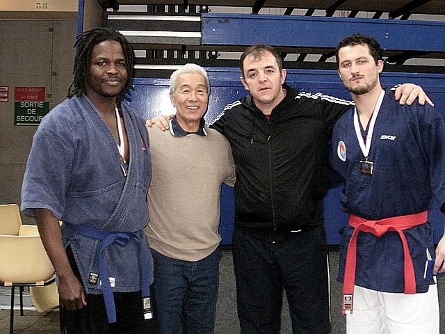 Open de France , Coupe de France, Championnat de France: Karaté Contact, Karaté Jutsu, Karaté Mix, Full-Contact, Sanda, Yoseikan Budo,Kick Boxing, Muay-Thaï, Shuai-Jiao Open contact Inter Disciplines 2010 Mes élèves médaille d'or et d'argent félicité par le Fondateur du Yoseikan Budo le Maitre Hiroo Mochizuki 10 dan |  | Magnier Steve Médaille d'or seniors +85kg vainqueur des Open Contact Inter Disciplines Sogoyou Samy Médaille d'argent seniors +85kg Vice Champion des Open Contact Inter Discipline. En présence du Maitre Hiroo Mochizuki 10 DAN Fondateur du Yoseikan Budo et de David Demerin |