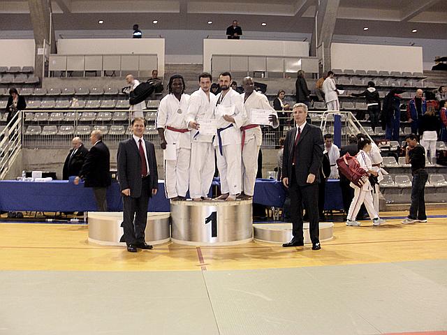 Open de France , Coupe de France, Championnat de France: Karaté Contact, Karaté Jutsu, Karaté Mix, Full-Contact, Sanda, Yoseikan Budo,Kick Boxing, Muay-Thaï, Shuai-Jiao Steve Magnier et Samy Sogoyou sur le Podium du Championnat de France de Karaté Contact 2010 a Paris |  |