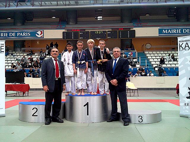 Open de France , Coupe de France, Championnat de France: Karaté Contact, Karaté Jutsu, Karaté Mix, Full-Contact, Sanda, Yoseikan Budo,Kick Boxing, Muay-Thaï, Shuai-Jiao Alexandre Lermenier catégorie Benjamin -30kg Vainqueur Médaille d'Or des Open Semi-Contact Interdisciplines le 27 mars 2011 a Paris |  |