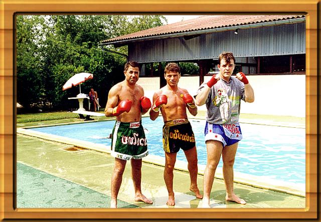 Stage avec les pionniers du Muay Thaï en France. Et de véritable champion et légende de la Boxe Thaïlandaise et du Kick Boxing dans l'exagone Monsieur Jo Prestia plusieurs fois Champion du Monde de Boxe Thaïlandaise en compagnie de José Hernandez et Demerin David en 1992 |  | | Joe Prestia, Champion d'Europe de1987 à 1989, Champion du Monde de 1990 à 1992, Champion du Monde en 1993 en Kick Boxing. José Hernandez directeur technique national de l'époque de la fédération Française de boxe thaïlandaise, lors d'un stage national en 1992 au Temple sur Lot pour l'obtention du diplôme d'instructeur. |