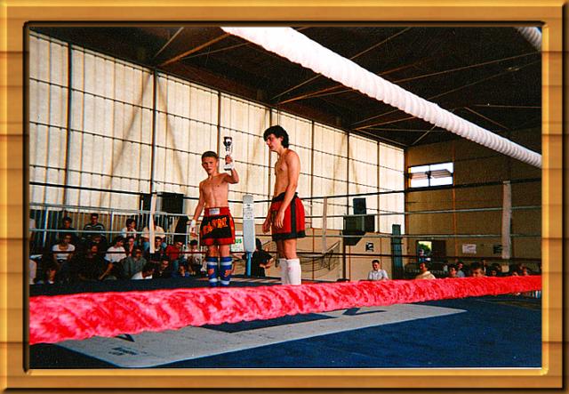 Stage avec les pionniers du Muay Thaï en France. Et de véritable champion et légende de la Boxe Thaïlandaise et du Kick Boxing dans l'exagone Jonathan Caurette lors du premier Tournoi National de Boxe Thaïlandaise et de Kick Boxing organisé à la salle Gilbert Lavoine à Laon en Juin 1996 |  | Les Champions du Club