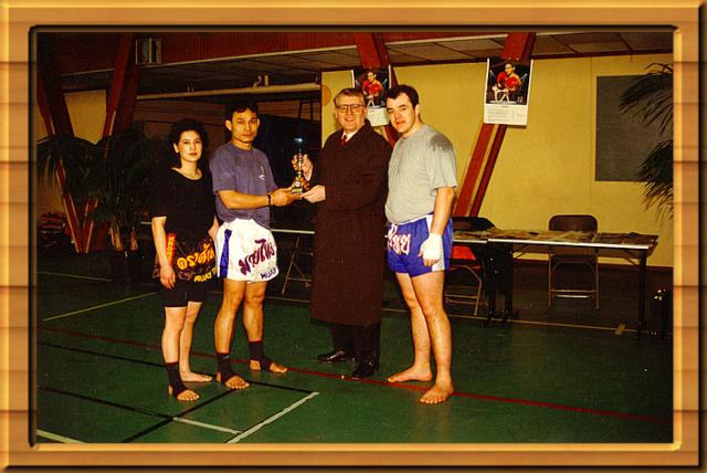 Stage avec les pionniers du Muay Thaï en France. Et de véritable champion et légende de la Boxe Thaïlandaise et du Kick Boxing dans l'exagone Katy Paschy la fille du légendaire Roger Paschy avec Krongsak la légende du Muay Thaï en 1996 lors d'un Stage dans mon club en présence du Député Maire Jean Claude Lamant. |  | KRONGSAK PRAKONG-BORANRAT