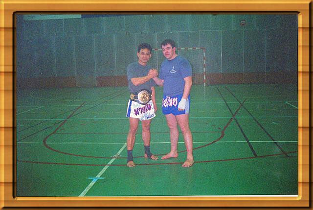 Stage avec les pionniers du Muay Thaï en France. Et de véritable champion et légende de la Boxe Thaïlandaise et du Kick Boxing dans l'exagone Krongsak Champion du Monde de Muay Thaï en stage dans mon Club et David Demerin |  |