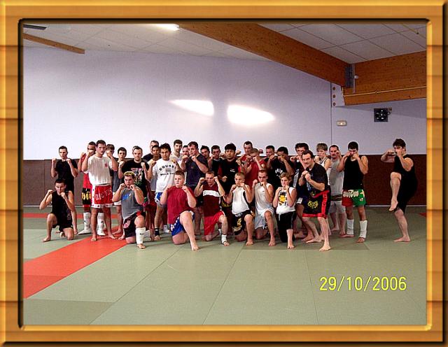 Stage avec les pionniers du Muay Thaï en France. Et de véritable champion et légende de la Boxe Thaïlandaise et du Kick Boxing dans l'exagone Stage Muay Thaï avec Krongsak en 2006 avec mes élèves. |  |