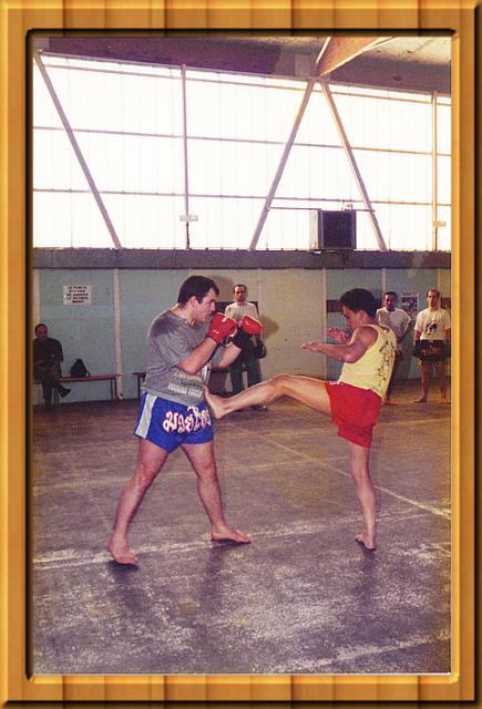 Stage avec les pionniers du Muay Thaï en France. Et de véritable champion et légende de la Boxe Thaïlandaise et du Kick Boxing dans l'exagone Le légendaire Pud Pad Noy Worawoot démontrant le front Kick en contre sur un enchaînement de poing |  |