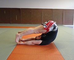 Halasana posture d'étirement et d'assouplissement des muscles du dos. |