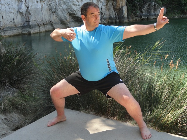 La voie de l'énergie interne développement des capacités mentales et physiques - Santé - Bien- être - Vitalité - Yi Quan - Qi Gong - Yoga - Arts Martiaux- Méditation. Posture de viser l'aigle |  | Viser l'aigle renforce la taille et les reins. Développe et ouvre la capacité respiratoire. Renforce la musculature des bras, des épaules et des membres inférieures. Il tonifie les méridiens du poumon,du gros intestin et renforce le Qi des reins.