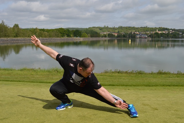 Travail d'étirement et de renforcement musculaire, avec un travail postural sur chaque mouvement. Excellent pour renforcer les cuisses et assouplir la ceinture pelvienne. Permet de renforcer l'ensemble du corps en effectuant plusieurs mouvements de chaque côté.