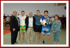 Krongsak Prakong-Boranrat véritable icône du Muay Thaï. Recevant la médaille d'honneur de la ville de Laon et du Conseil Général par Madame Marie France Doyer Maire Adjointe et Monsieur Fawaz Karimet Conseiller Général de l'Aisne et Marcel Mottet en 2006 |