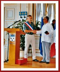 |  Maître Jean Luc Lesueur recevant la Médaille d'honneur de la ville de Laon par Monsieur Antoine Lefevre Maire de Laon Sénateur de l'Aisne |