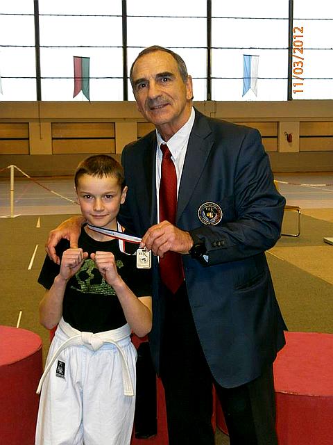 Open de France , Coupe de France, Championnat de France: Karaté Contact, Karaté Jutsu, Karaté Mix, Full-Contact, Sanda, Yoseikan Budo,Kick Boxing, Muay-Thaï, Shuai-Jiao Alexandre Lermenier Médaille d'Or de la Coupe de France de Karaté Semi Contact le 11 mars 2012 à Paris en Compagnie de Monsieur Dominique Valera |  |