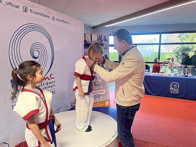 Open de France , Coupe de France, Championnat de France: Karaté Contact, Karaté Jutsu, Karaté Mix, Full-Contact, Sanda, Yoseikan Budo,Kick Boxing, Muay-Thaï, Shuai-Jiao Gazé Marie vainqueur de la Coupe de France de Shuai-Jiao médaille remise par Monsieur Eric Delhaye maire de Laon le 8 février 2026 à Laon. |  | Gazé Marie catégorie poussins poids 24 kg médaille d'or vainqueur de la coupe de France de Shuai-Jiao lutte chinoise2026 . Nguyen Celestre catégorie poussins poids 24 kg médaille d'argent de la coupe de France.