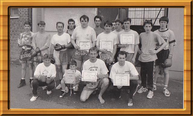 Stage avec les pionniers du Muay Thaï en France. Et de véritable champion et légende de la Boxe Thaïlandaise et du Kick Boxing dans l'exagone Mes élèves ayant obtenus leurs diplômes d'instructeurs fédérales de Kick Boxing en 1995 |  | | David Arthus , Carlos Pintos, Viéville David, Didier Anceaux en 1995 ayant tous obtenus leurs Diplômes d'instructeur fédérales de Kick Boxing auprès de la Fédération Française de Kick Boxing-Full Contact et Disciplines associées |